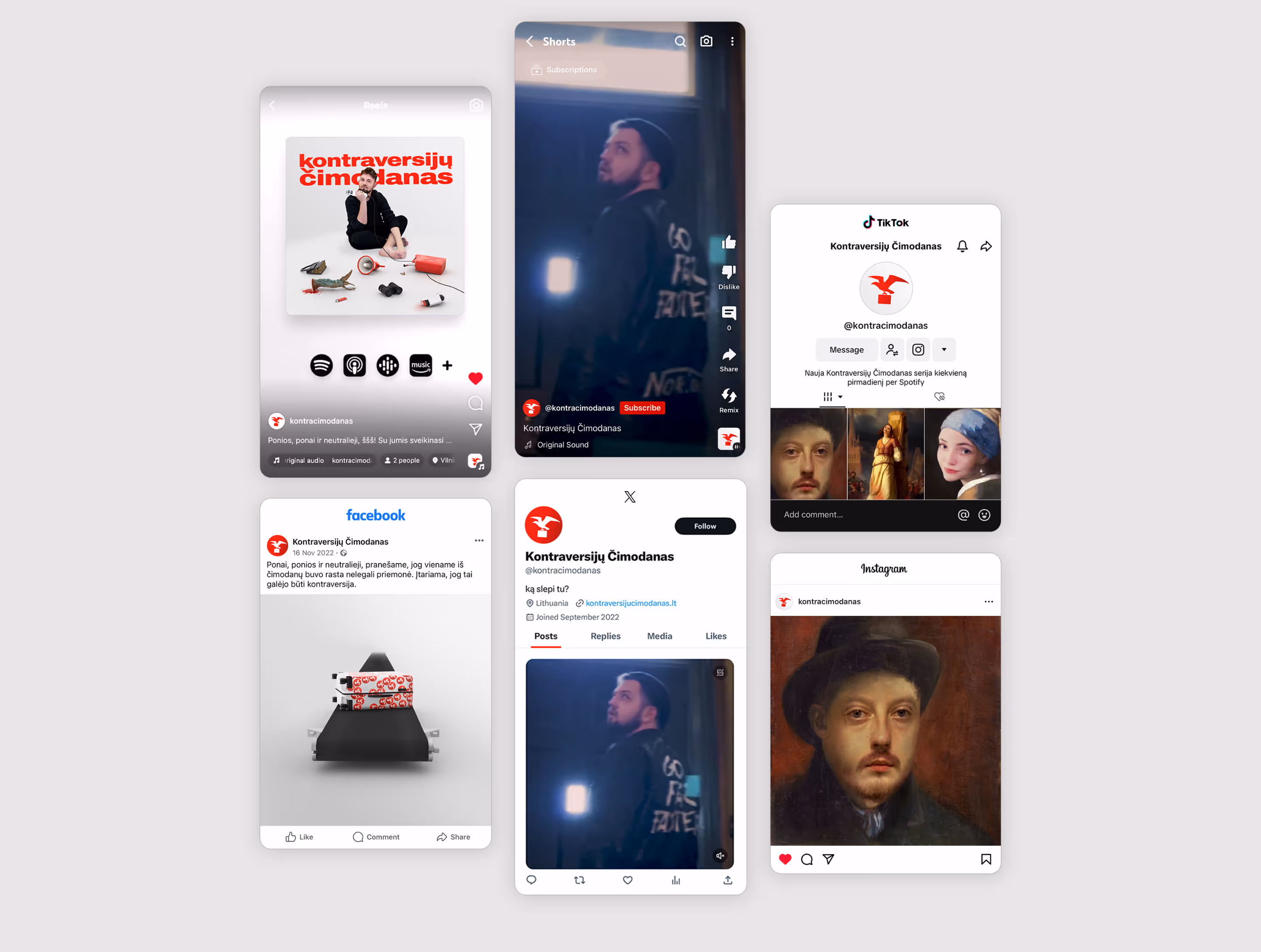 Kontraversijų Čimodanas is a media activation by young students, artists, and commentators in Lithuania. I worked on development of the brand and all visual elements of the podcast, tying the elements and ideas together for a cohesive and standout brand.